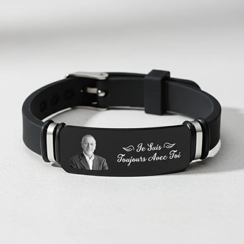 Ce bracelet est magnifique et la photo est d'une clarté incroyable. Je porte mon papa toujours avec moi, c'est si réconfortant. La qualité est top, il ne bouge pas!